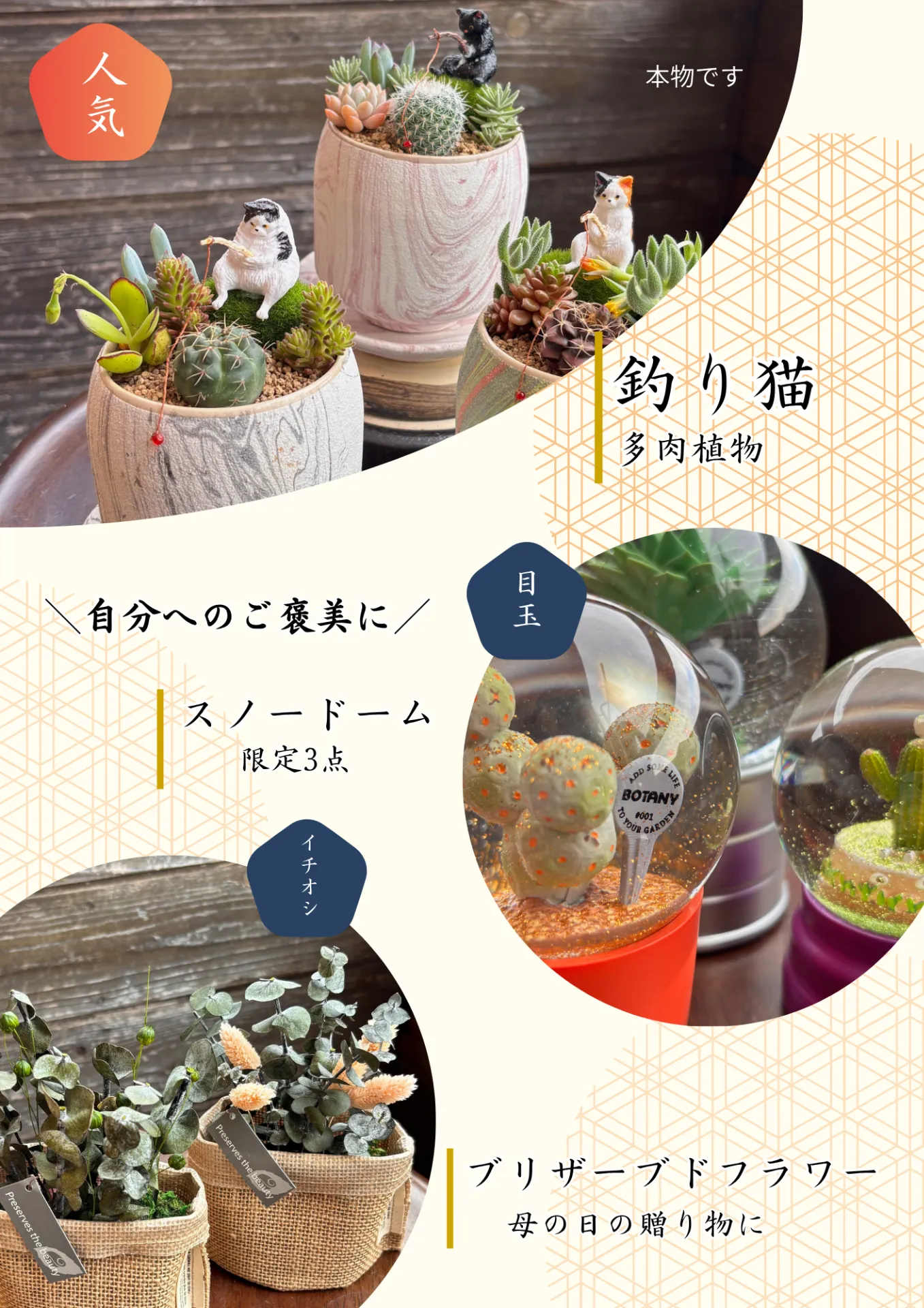 植物のスノードーム(限定3個)もキュート♡。